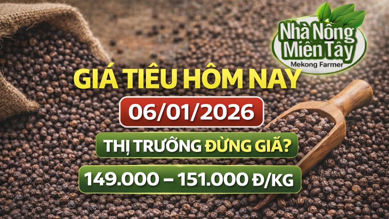 Pepper price update January 6, 2026 After slight fluctuations last weekend, the domestic and world pepper markets are in a stagnant state today. 📌 Domestic Pepper prices today range from 149,000 – 151,000 VND/kg, specifically: – Gia Lai – Dak Nong – Binh Phuoc: 149,000 – 150,000 VND/kg – Ba Ria – Vung Tau – Dong Nai: 150,500 – 151,000 VND/kg 🌍 World market: Export price of pepper Exports remain stable, with no major fluctuations recorded from European and Middle Eastern markets. 📊 In the video, people will be updated: ✔️ Detailed pepper prices for each region ✔️ Comparison with yesterday & last week ✔️ Short-term trend assessment 👉 People should closely monitor the market to choose the most reasonable time to sell in the first week of the year. 🔔 Remember to subscribe to the Western Farmers channel to receive the earliest notifications about agricultural product prices every day! #giatieuhomnay #giatieu06012026 #giatieu2026 #nhanongmientay #gianongsan #hotieuvietnam